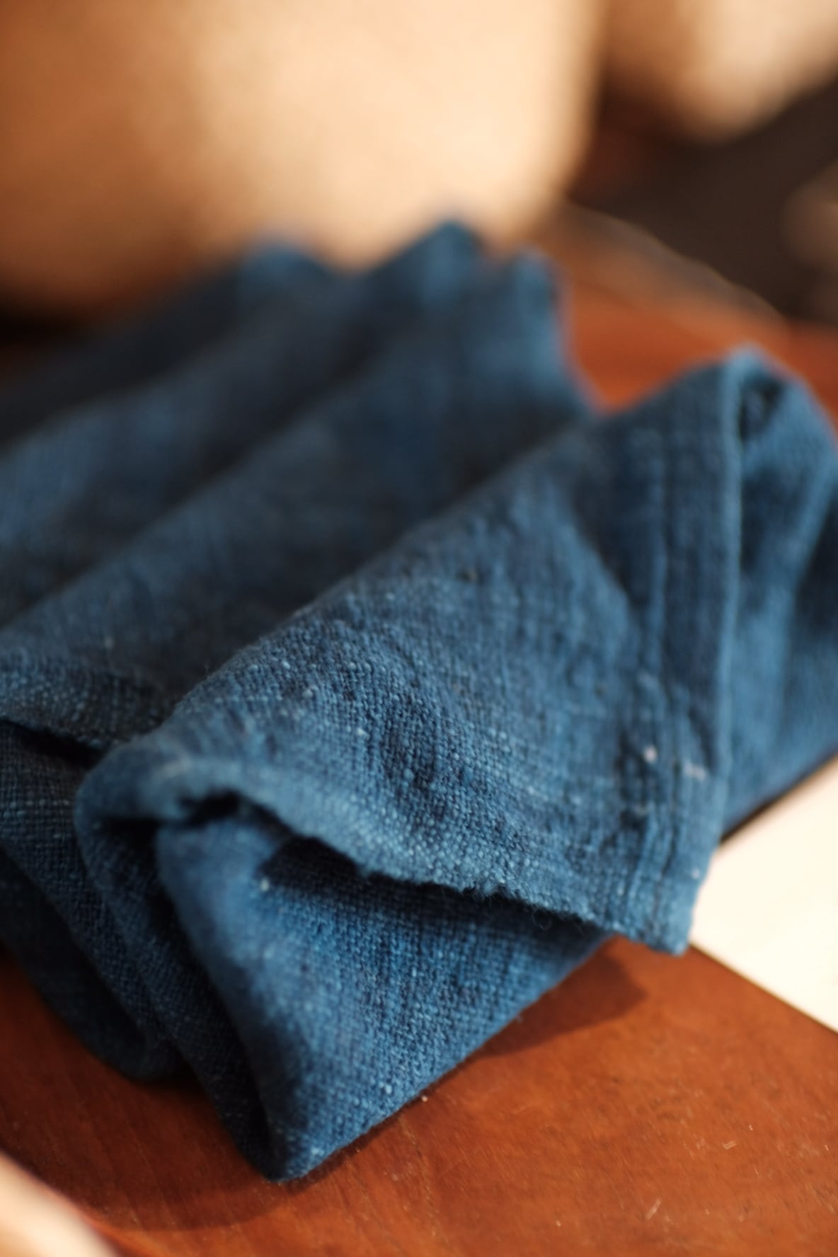 使いはじめはすこし固さがありますが、綿の油が徐々になくなるとくったりとしたやわらかな布巾になります。藍染めタイプ